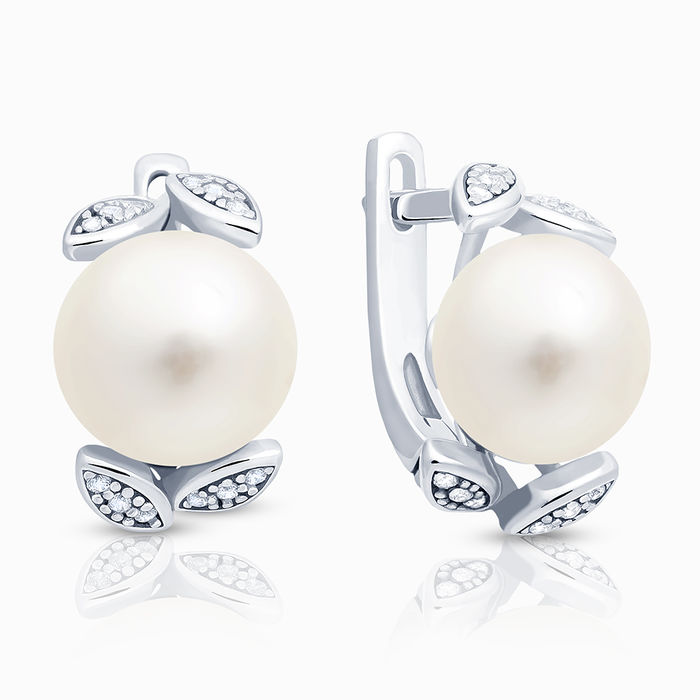 Серьги из серебра с фианитом и с жемчугом SKAZKA 09783