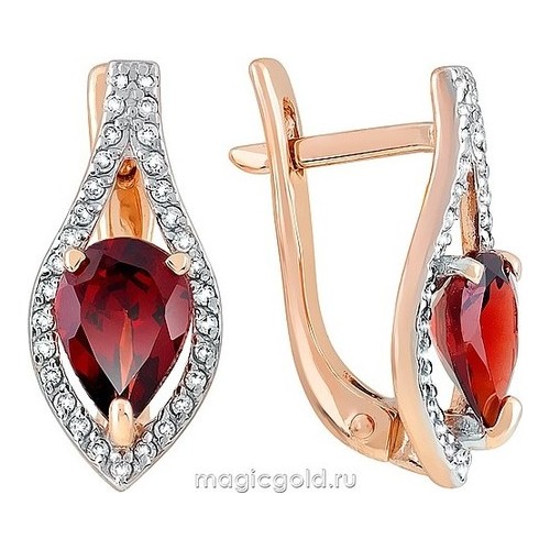 Серьги из золота с фианитом и с хризолитом Магия Золота сл-514к-х