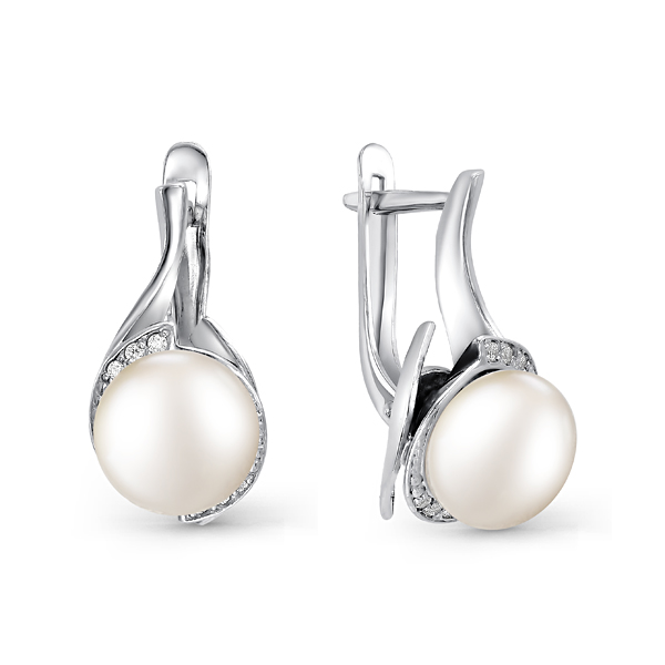 Серьги из серебра с фианитом и с жемчугом Де Флер 52199S1