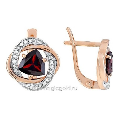 Серьги из золота с фианитом и с гранатом Магия Золота сл-510к-г