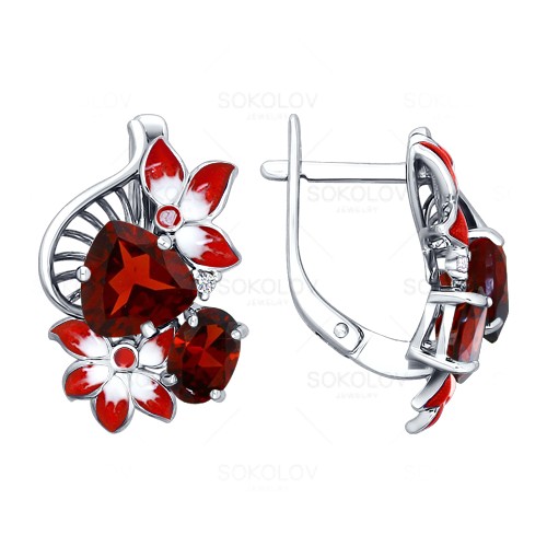 Серьги из серебра с фианитом, с гранатом и с эмалью SOKOLOV 92020532