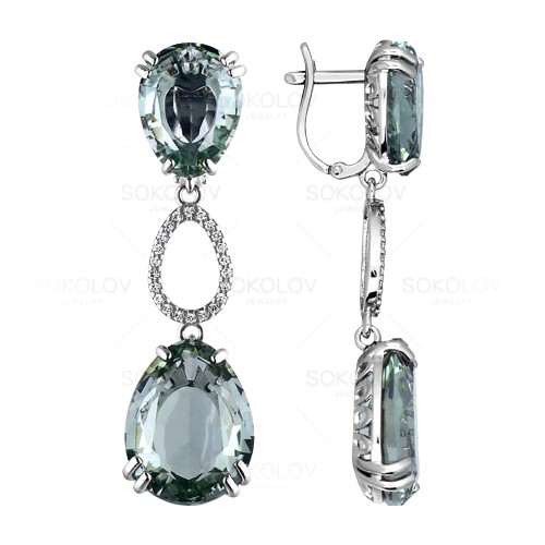 Серьги из серебра с фианитом и с кварцем SOKOLOV 92020843