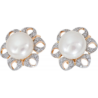 Серьги из золота с фианитом и с жемчугом Жемчужное Подворье 25510815.0.b