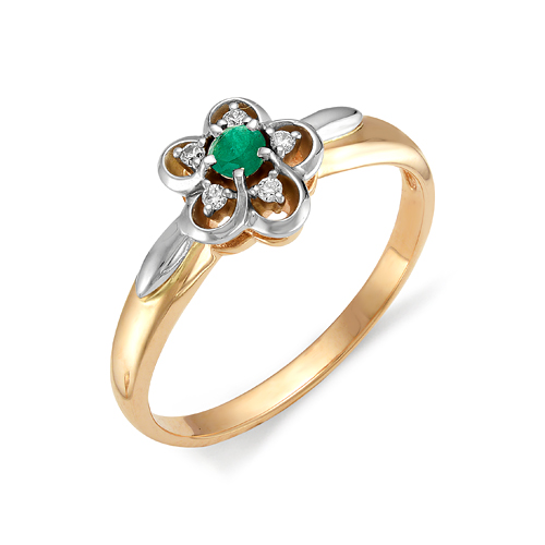 Серьги из золота с бриллиантом и с изумрудом Алькор 21618-101
