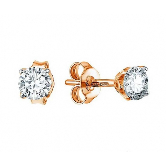 Серьги пусеты из серебра с позолотой с фианитом SKAZKA 42562