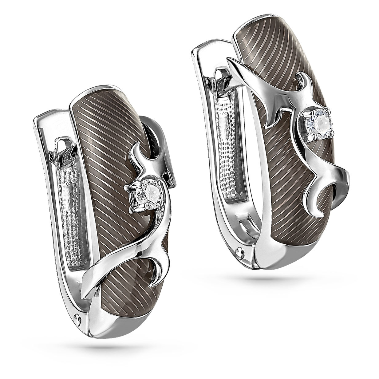 Серьги из белого золота с бриллиантом и с эмалью KABAROVSKY 12-11065-1019