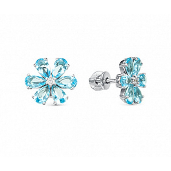 Серьги пусеты из серебра с фианитом Силверк lle 1