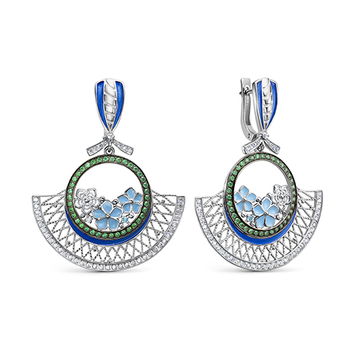 Серьги из серебра с кристаллом сваровским и с ониксом KABAROVSKY 12-127-6601