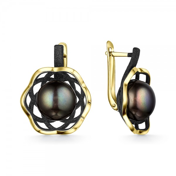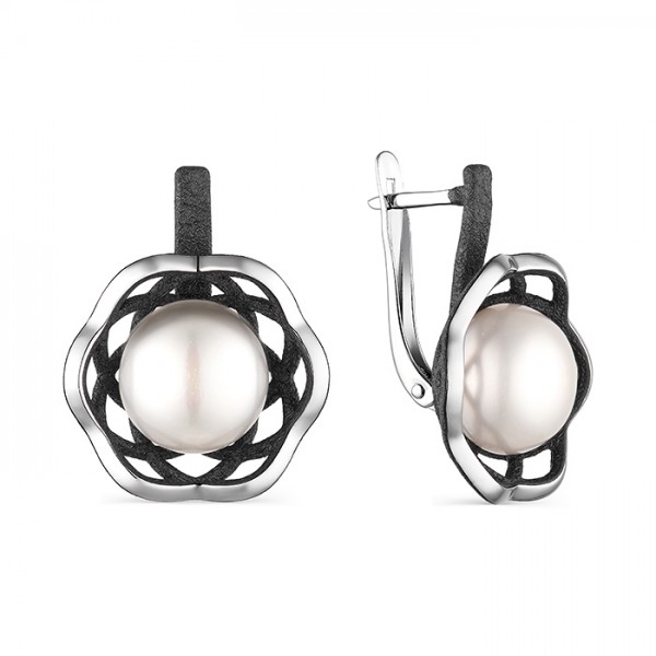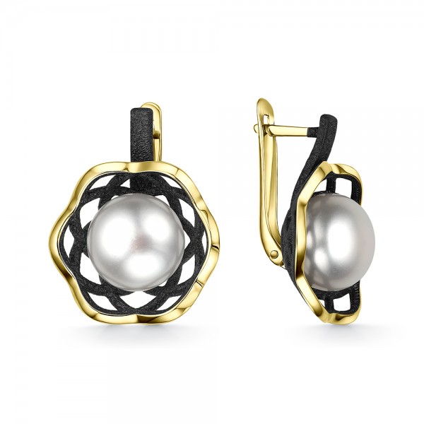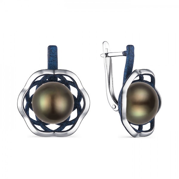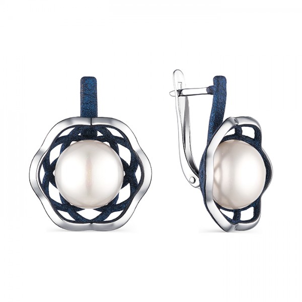 Серьги из серебра с жемчугом и с эмалью Де Флер 52851S1U