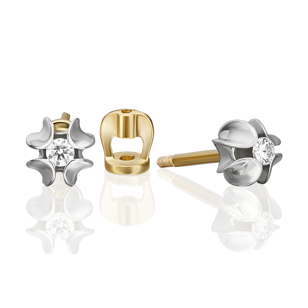 Серьги пусеты из лимонного золота с бриллиантом KABAROVSKY 2-2060-9200