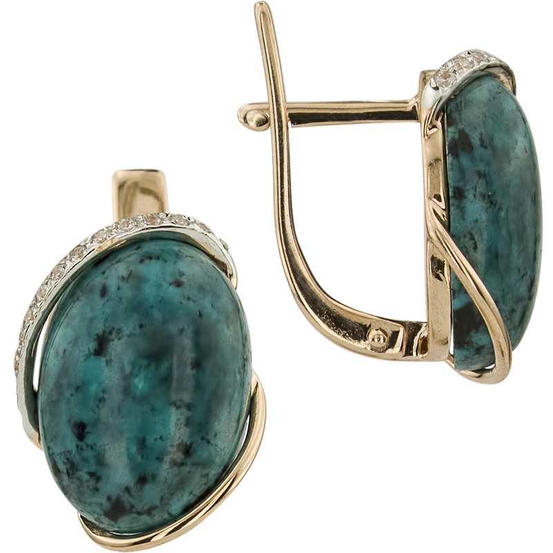 Серьги из золота с фианитом и с бирюзой Алорис 021456