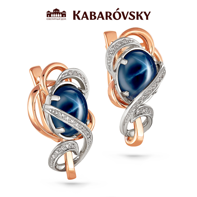 Серьги из золота с бриллиантом и с сапфиром KABAROVSKY 12-0515-1400