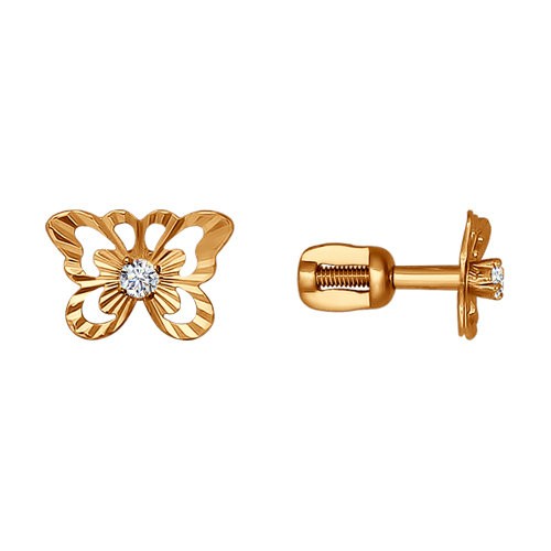 Серьги пусеты из золота с фианитом Дельта 051015