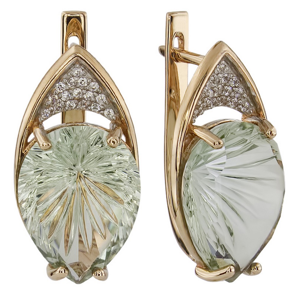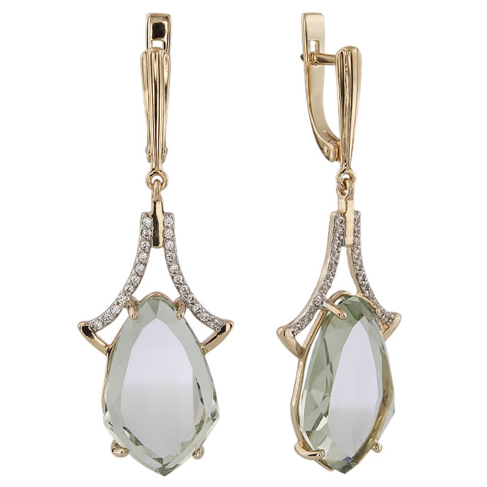 Выбираете украшение для собственной коллекции или хотите сделать роскошный подарок? Серьги покоряют с первого взгляда. Дизайнеры продумали каждую деталь: золото 585 пробы красиво блестит как в искусственном, так и в естественном свете, а вставка (аметист зеленый, цирконий) играет собственными гранями, дополняя визуальный эффект. Общий вес изделия — 3,9, смотрится очень аккуратно, но при этом выразительно и стильно. Серьги можно носить с разными образами, и в любом вы будете сиять и привлекать восхищенные взгляды. Мы уверены, что всегда найдется повод надеть это великолепное украшение.