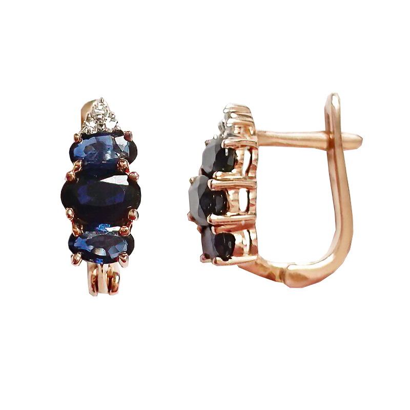 Серьги из золота с бриллиантом и с сапфиром Клондайк 555010кс