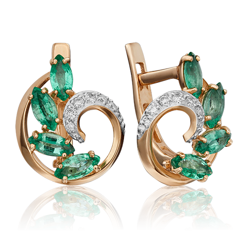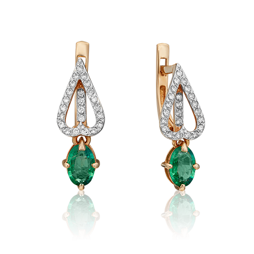Серьги из золота с бриллиантом и с изумрудом Аметист 54010109