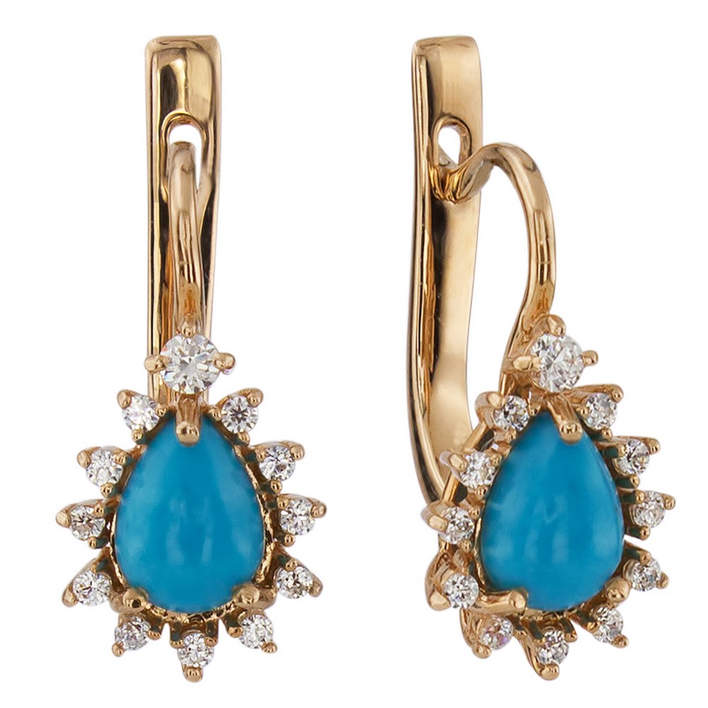 Серьги из золота с фианитом и с бирюзой Алорис 022133