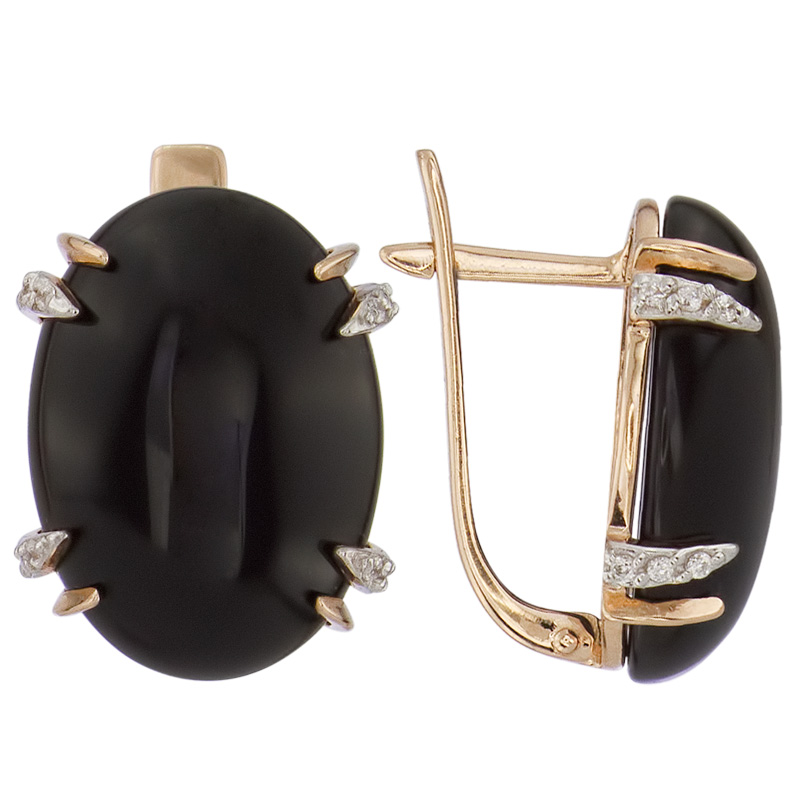Серьги из золота с фианитом и с ониксом Алорис 021362
