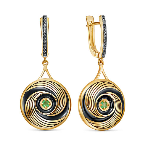 Серьги из серебра с фианитом, с изумрудом и с агатом KABAROVSKY 12-706-1202