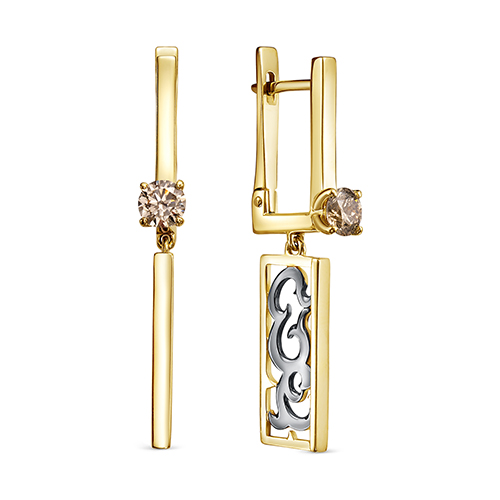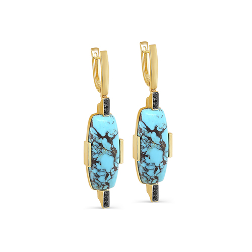 Серьги из лимонного золота с бриллиантом и с бирюзой KABAROVSKY 12-21836-70589
