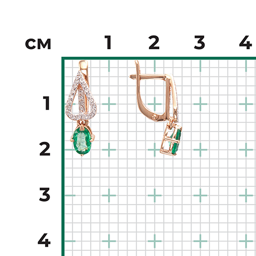 Серьги из золота с бриллиантом и с изумрудом Платина 02-0808-00-106-1110-30