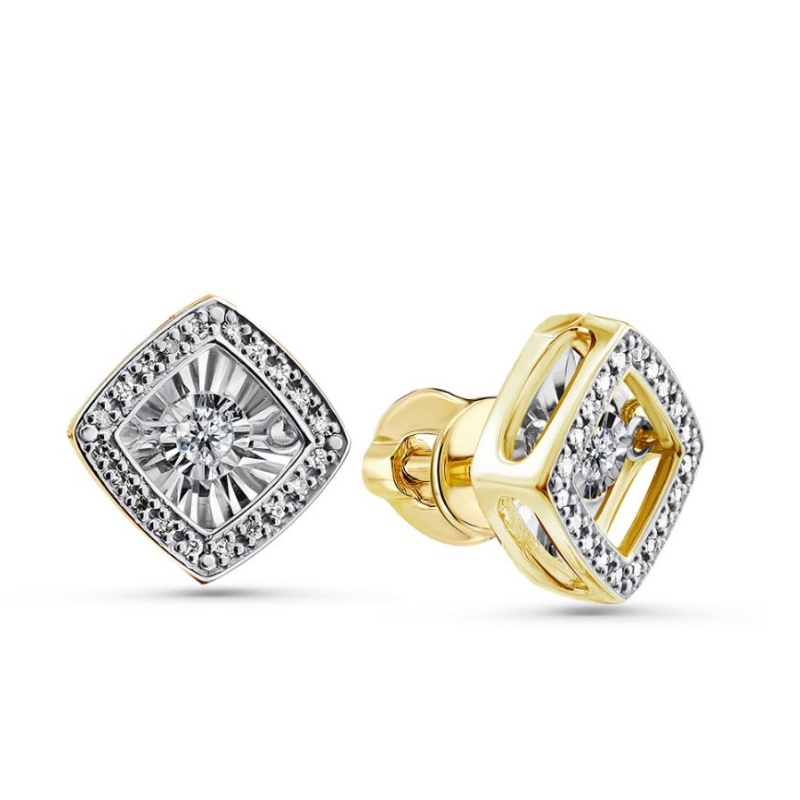 Серьги пусеты из лимонного золота с бриллиантом GRIGORIEV 12-13-5499-31-00