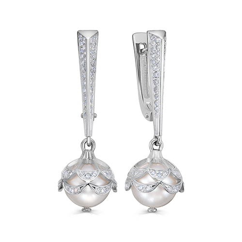 Серьги из белого золота с бриллиантом и с жемчугом KABAROVSKY 12-11661-22900