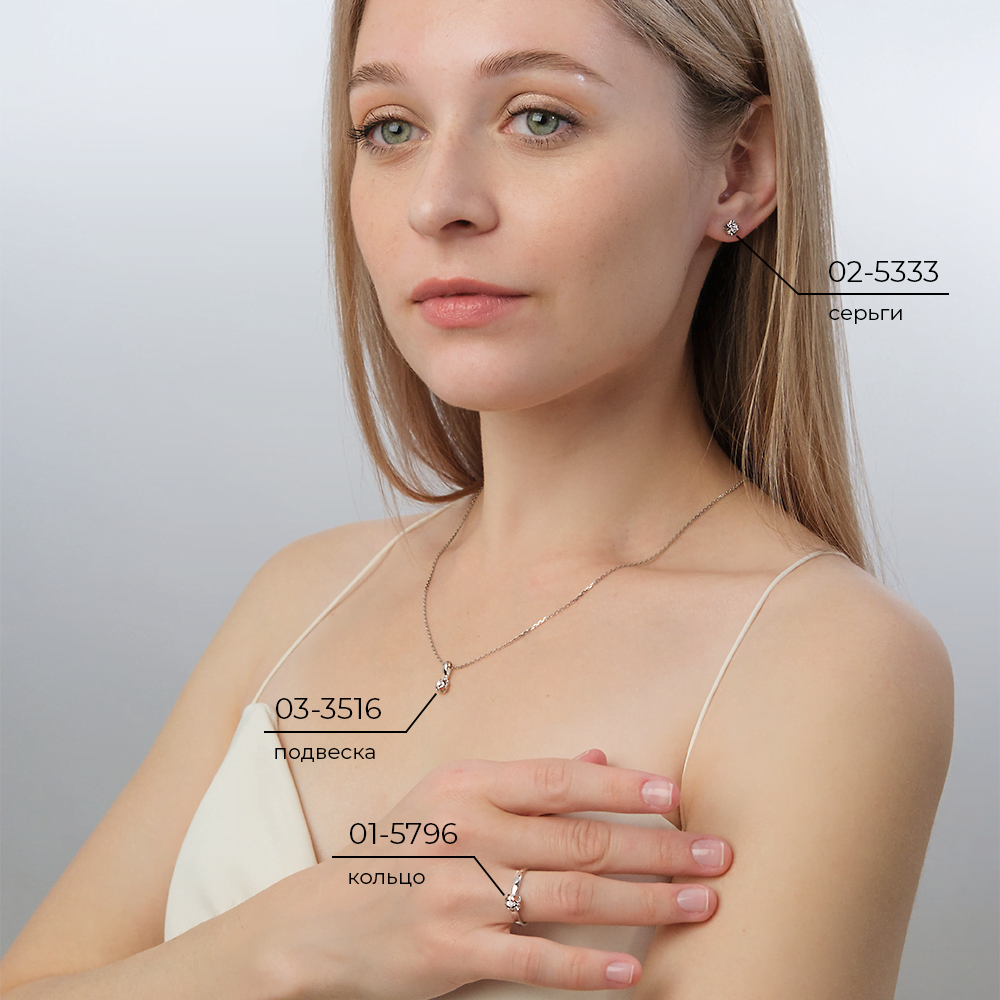 Серьги пусеты из белого золота с бриллиантом Платина 02-5333-00-101-1120