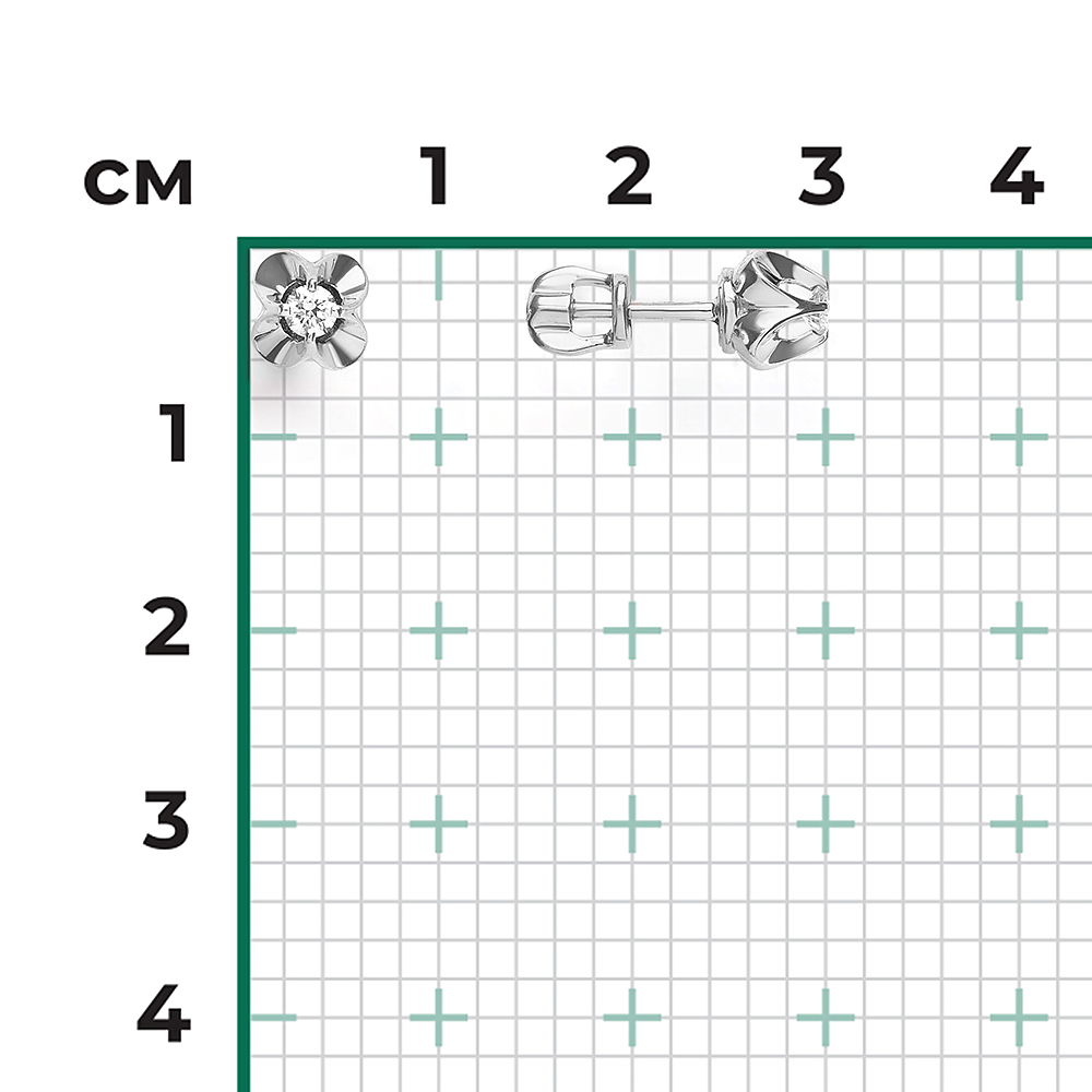 Серьги пусеты из белого золота с бриллиантом Платина 02-5350-00-101-1120