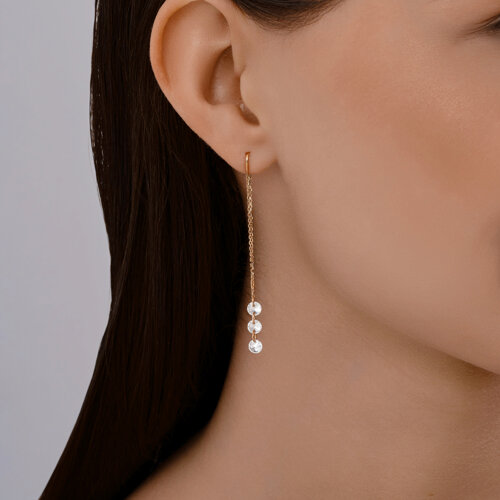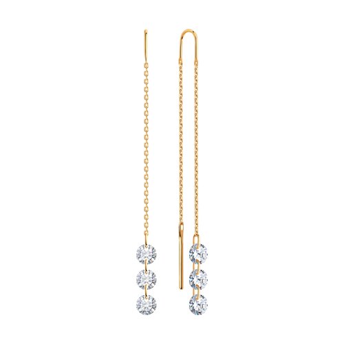 Серьги продевки из золота с фианитом SOKOLOV 0200496