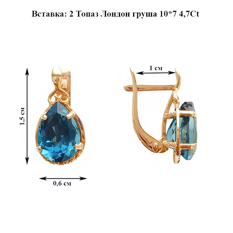 Серьги из золота с топазом ЮФ Кострома 20845