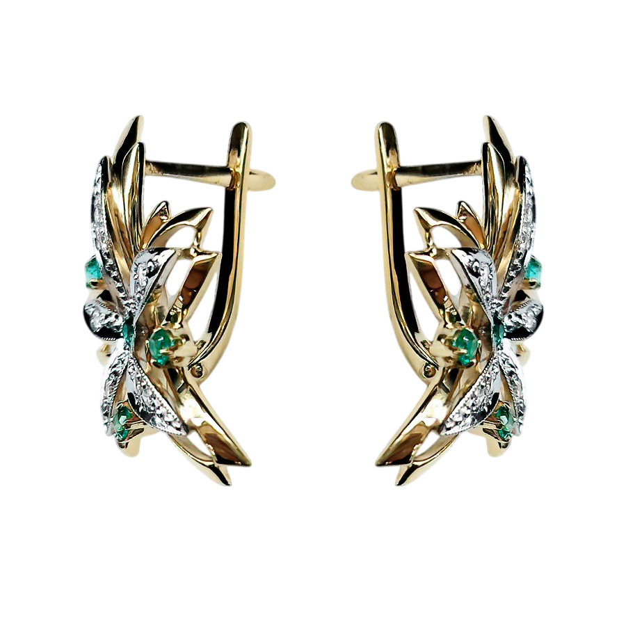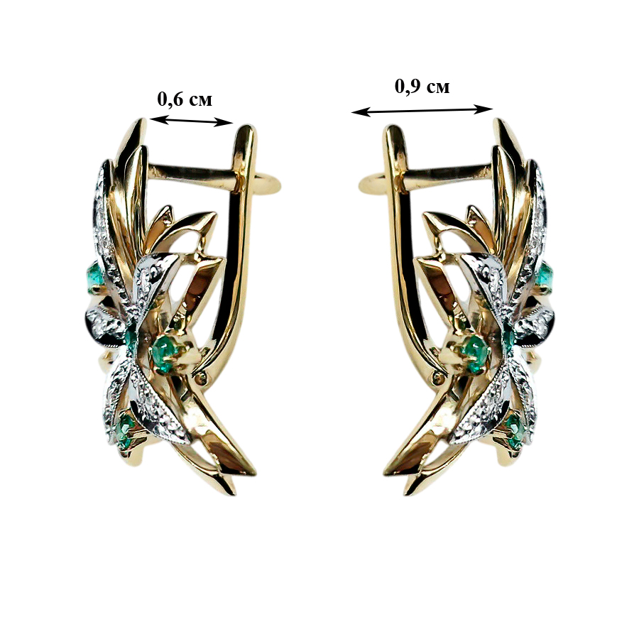 Серьги из лимонного золота с бриллиантом и с изумрудом Аметист 14010160