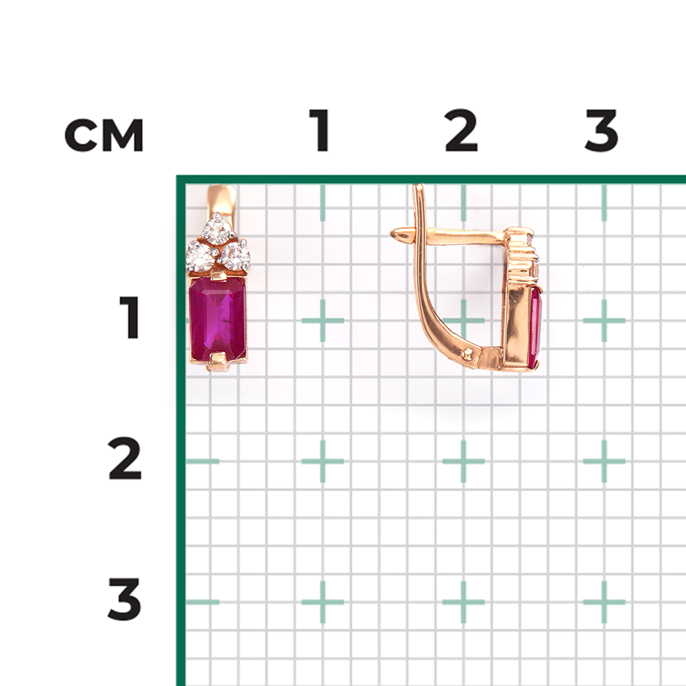 Серьги из золота с бриллиантом и с рубином Платина 02-0675-00-107-1110-30