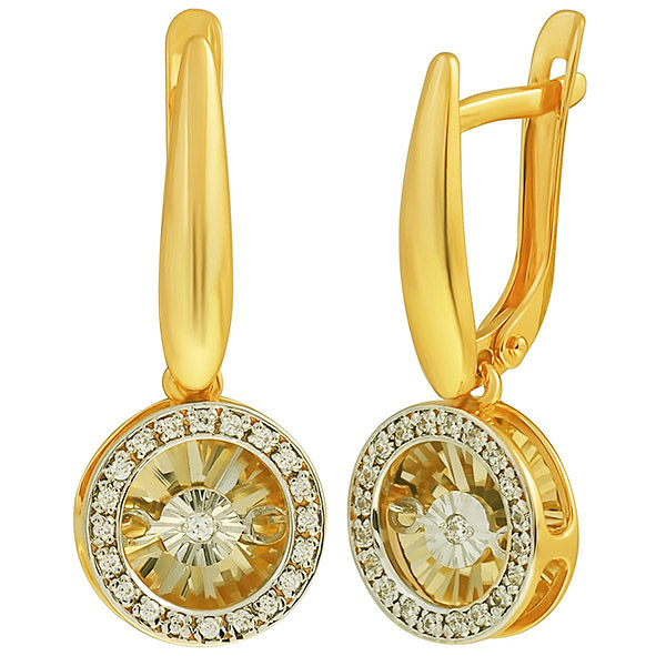 Выбираете украшение для собственной коллекции или хотите сделать роскошный подарок? Серьги покоряют с первого взгляда. Дизайнеры продумали каждую деталь: желтое золото 585 пробы красиво блестит как в искусственном, так и в естественном свете, а вставка (бриллиант: 42 шт. 17 круглая 2/3 а, вес 0,16) играет собственными гранями, дополняя визуальный эффект. Общий вес изделия — 4,25, смотрится очень аккуратно, но при этом выразительно и стильно. Серьги можно носить с разными образами, и в любом вы будете сиять и привлекать восхищенные взгляды. Мы уверены, что всегда найдется повод надеть это великолепное украшение.