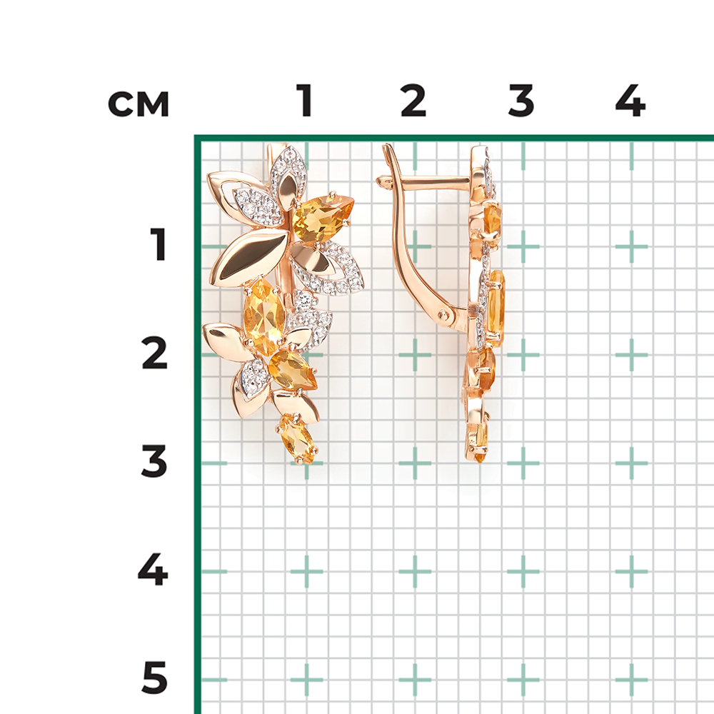 Серьги из золота с топазом и с цитрином Платина 02-5566-00-282-1110