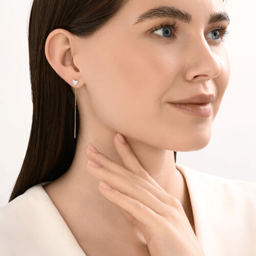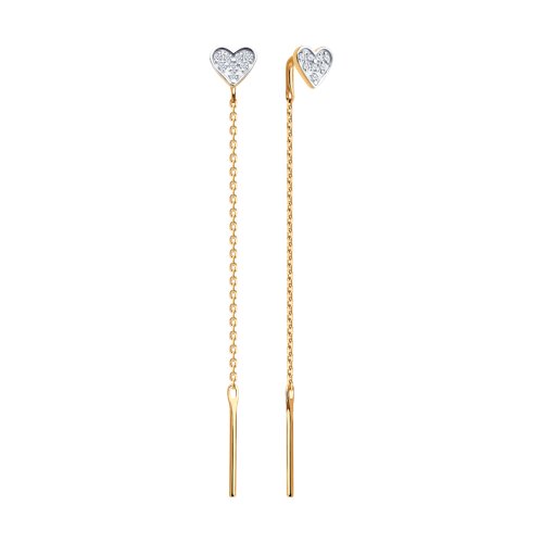Серьги продевки из золота с фианитом SOKOLOV 0200620