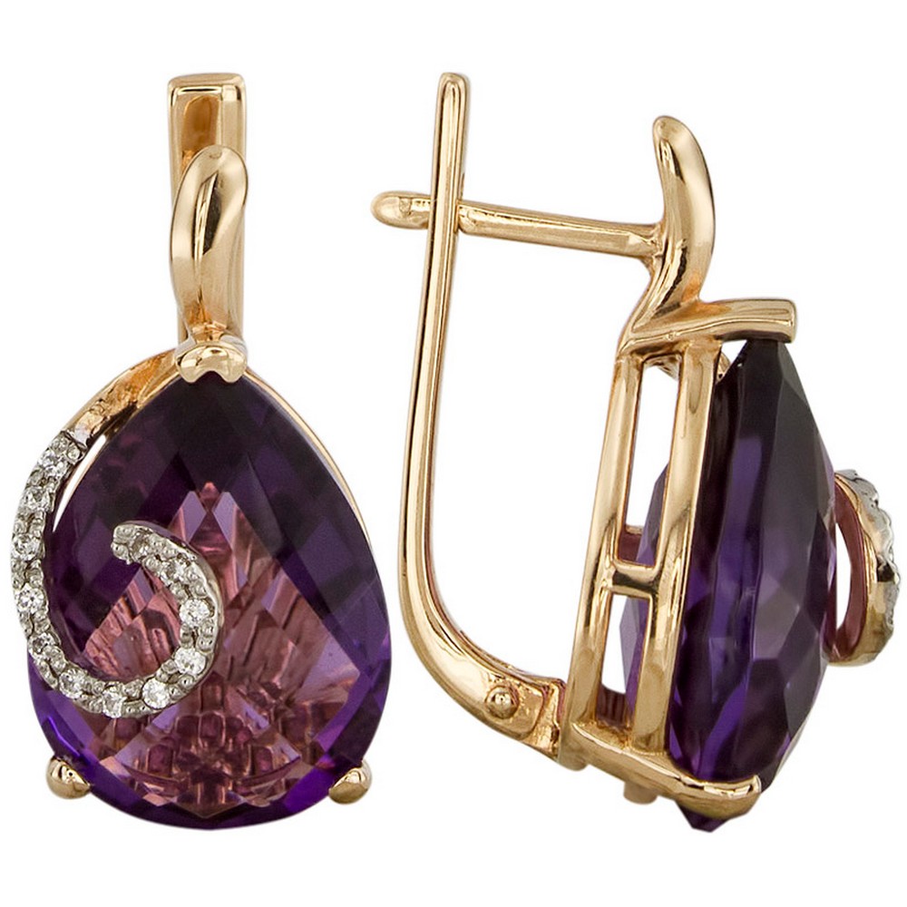 Выбираете украшение для собственной коллекции или хотите сделать роскошный подарок? Серьги покоряют с первого взгляда. Дизайнеры продумали каждую деталь: золото 585 пробы красиво блестит как в искусственном, так и в естественном свете, а вставка (аметист, цирконий) играет собственными гранями, дополняя визуальный эффект. Общий вес изделия — 7,97, смотрится очень аккуратно, но при этом выразительно и стильно. Серьги можно носить с разными образами, и в любом вы будете сиять и привлекать восхищенные взгляды. Мы уверены, что всегда найдется повод надеть это великолепное украшение.