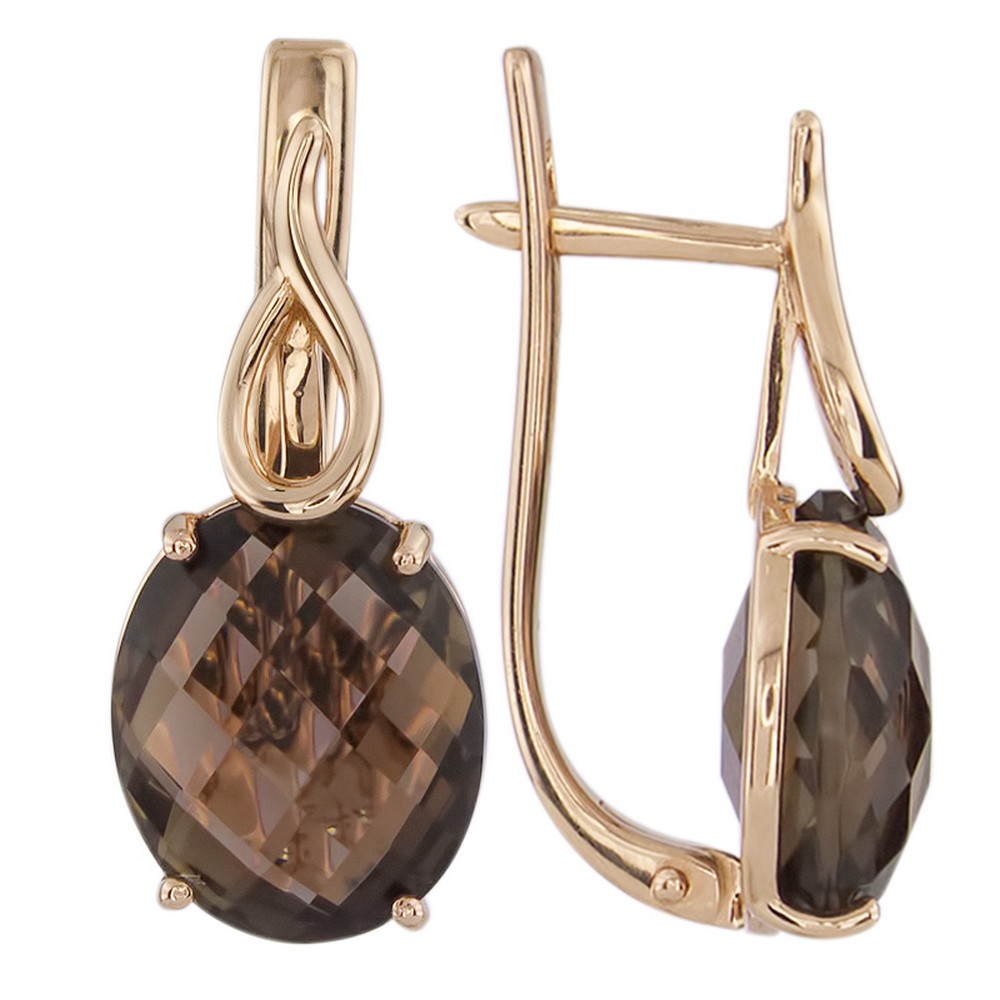 Выбираете украшение для собственной коллекции или хотите сделать роскошный подарок? Серьги покоряют с первого взгляда. Дизайнеры продумали каждую деталь: золото 585 пробы красиво блестит как в искусственном, так и в естественном свете, а вставка (раух-топаз) играет собственными гранями, дополняя визуальный эффект. Общий вес изделия — 4,73, смотрится очень аккуратно, но при этом выразительно и стильно. Серьги можно носить с разными образами, и в любом вы будете сиять и привлекать восхищенные взгляды. Мы уверены, что всегда найдется повод надеть это великолепное украшение.