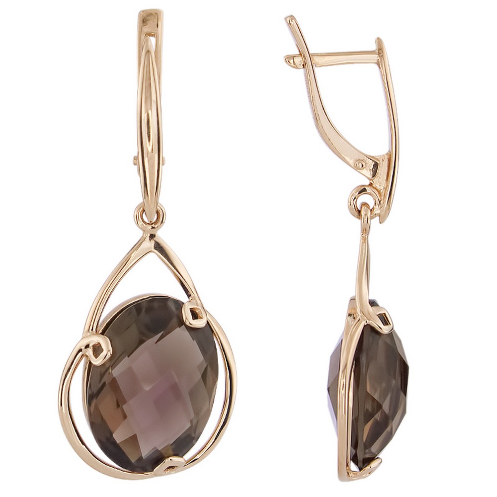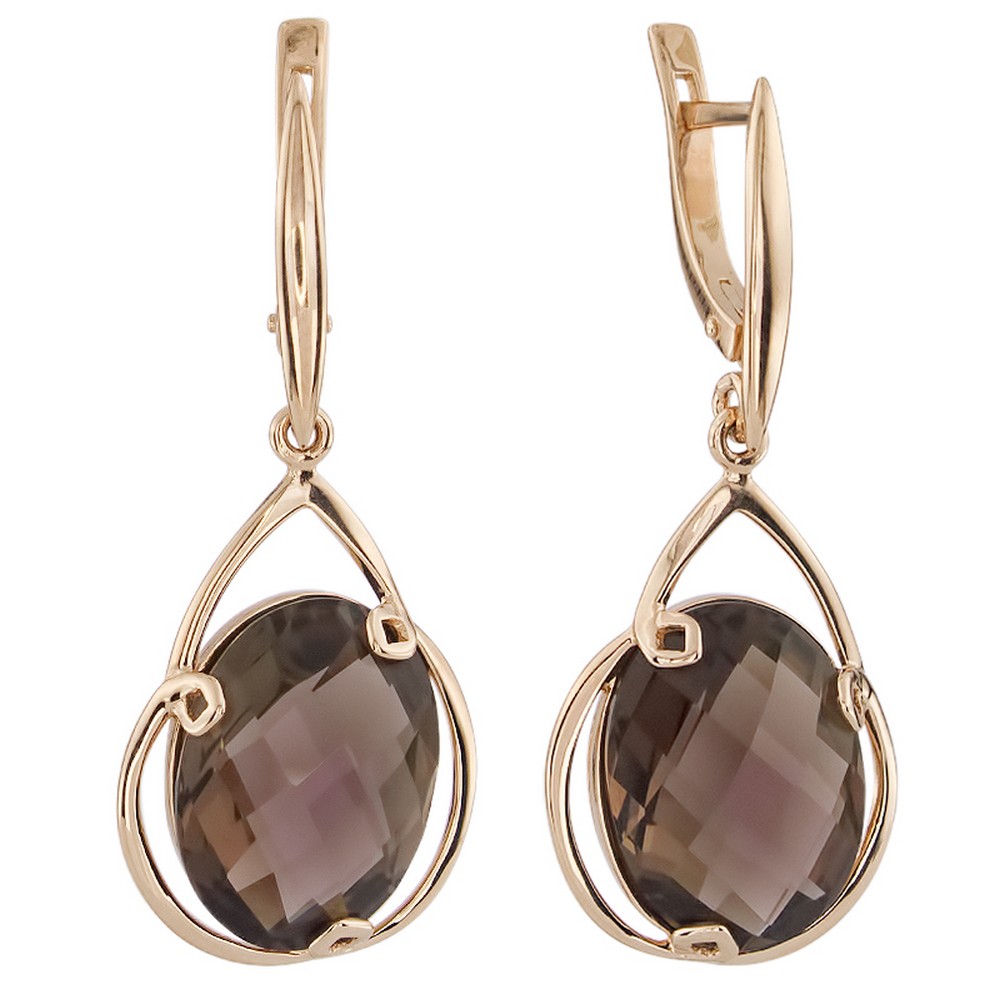 Выбираете украшение для собственной коллекции или хотите сделать роскошный подарок? Серьги покоряют с первого взгляда. Дизайнеры продумали каждую деталь: золото 585 пробы красиво блестит как в искусственном, так и в естественном свете, а вставка (раух-топаз) играет собственными гранями, дополняя визуальный эффект. Общий вес изделия — 7,72, смотрится очень аккуратно, но при этом выразительно и стильно. Серьги можно носить с разными образами, и в любом вы будете сиять и привлекать восхищенные взгляды. Мы уверены, что всегда найдется повод надеть это великолепное украшение.