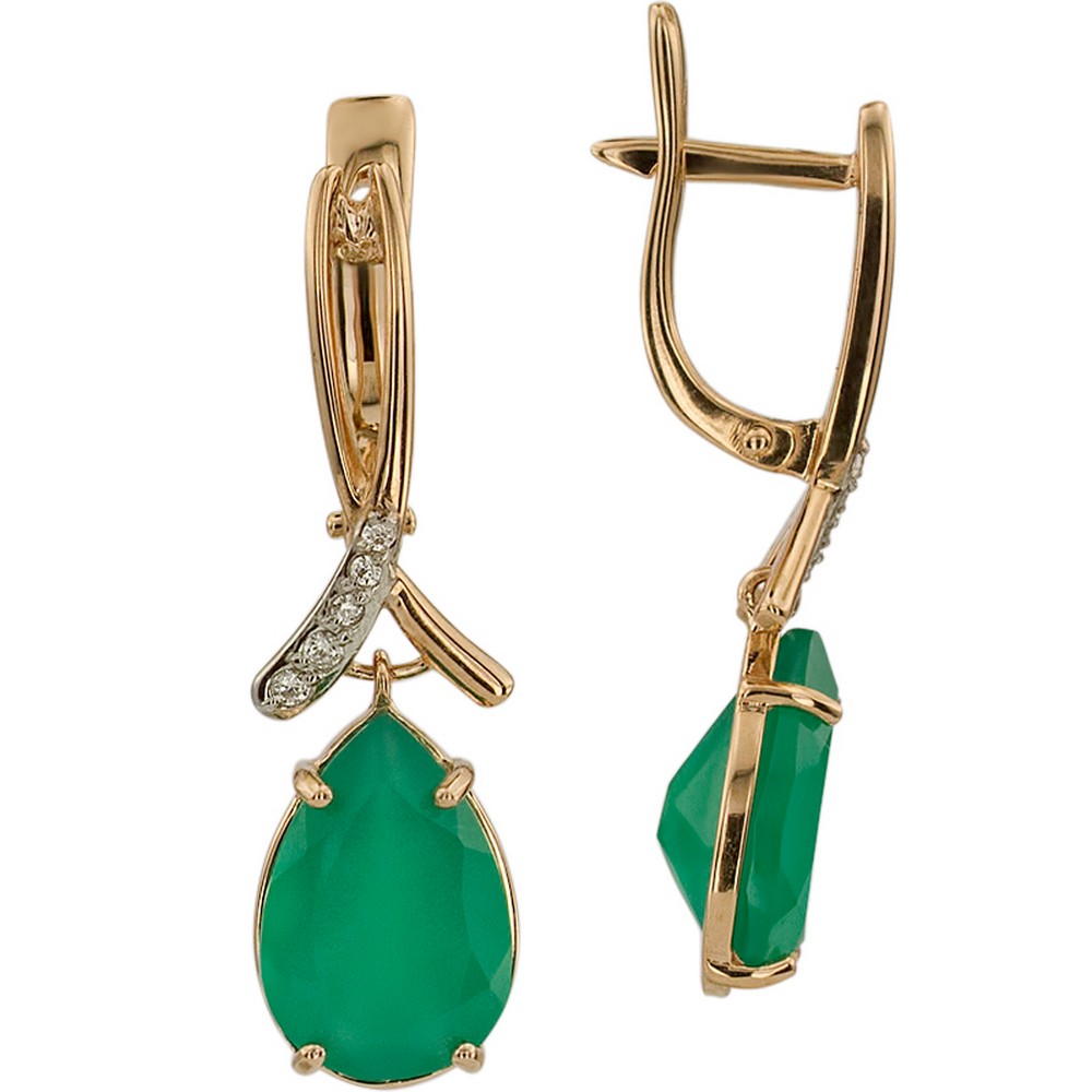 Серьги из золота с фианитом и с агатом Алорис 021441