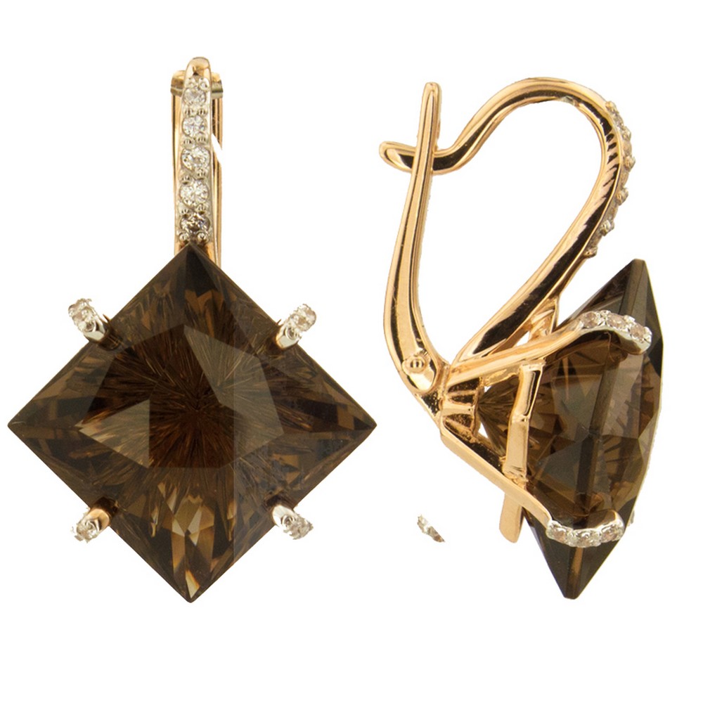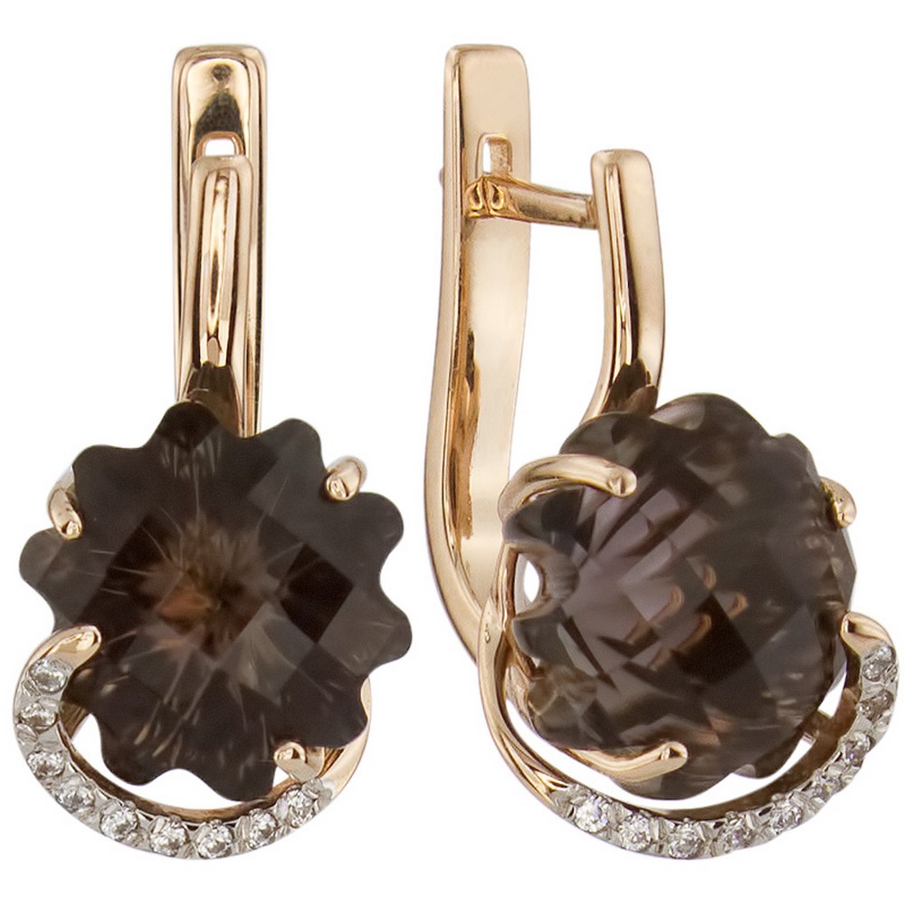 Серьги из золота с фианитом и с раухтопазом Алорис 021742