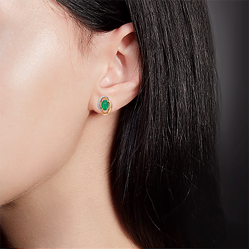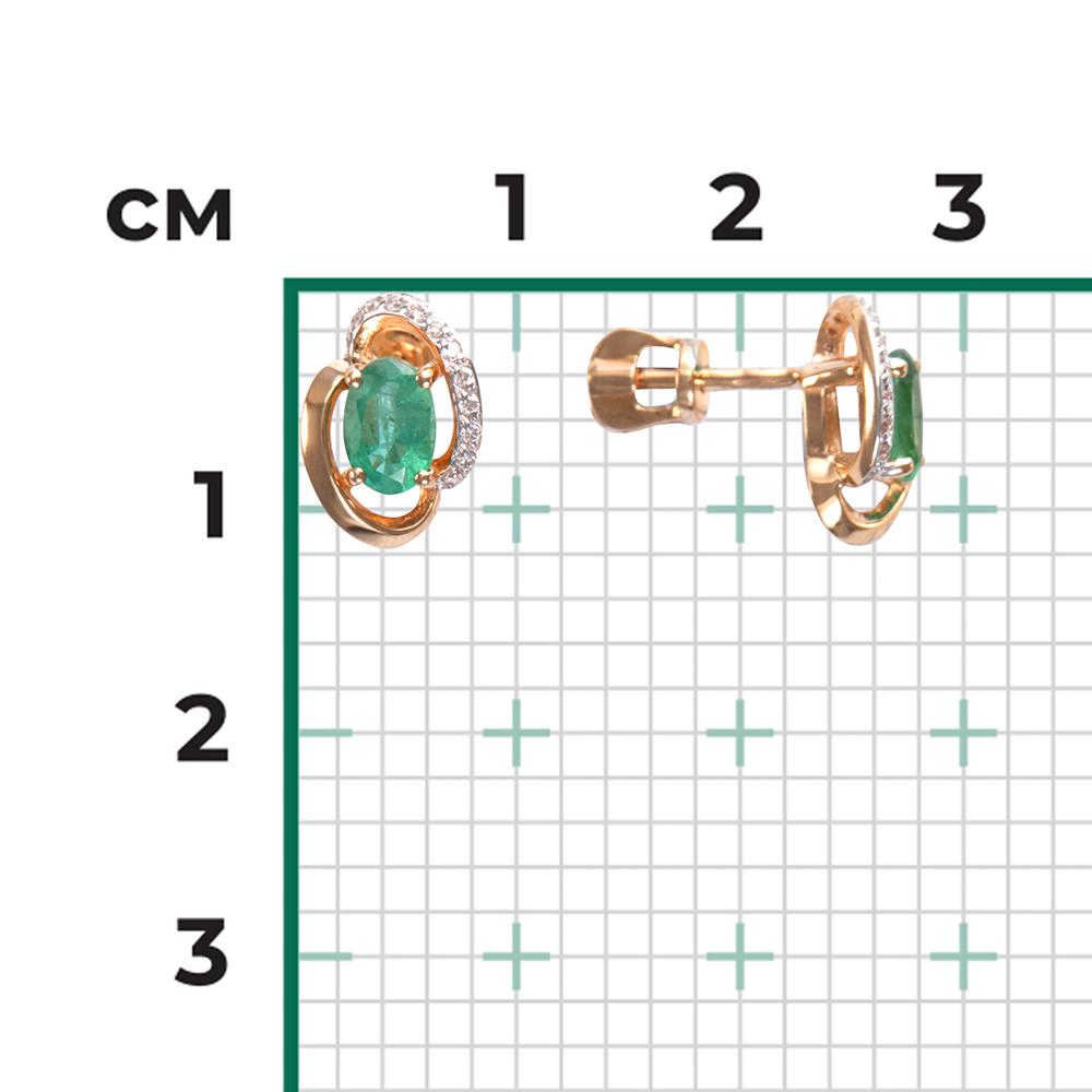 Серьги пусеты из золота с бриллиантом и с изумрудом Платина 02-0972-00-106-1110-30